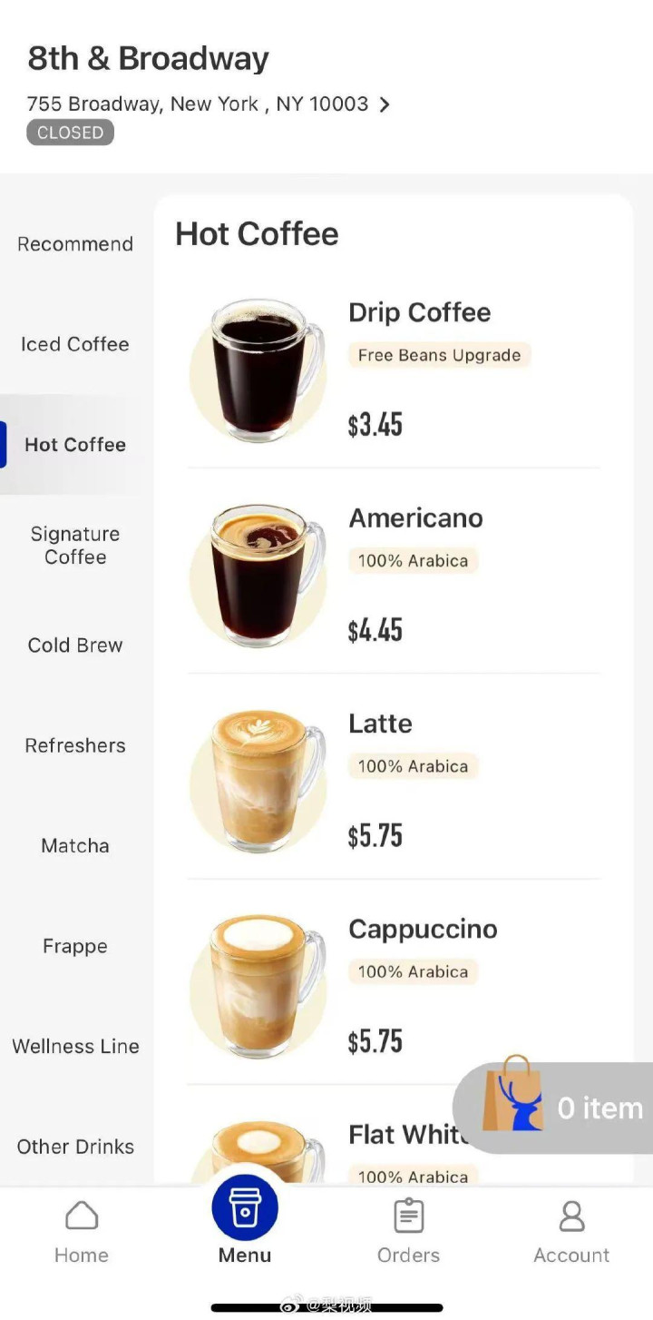 在美国市场大圣策略,瑞幸的定价与星巴克相近。美国星巴克的大杯美式咖啡定价4.65美元、大杯拿铁定价5.65美元。